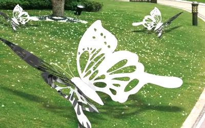 公園園林是人們休閑的主要場所,公園里的不銹鋼雕塑除地標性主題雕塑外,一般傳遞一種自然、和諧的理念,包括但不限于人物、動物、植物,如草叢間的蝴蝶、林蔭道邊的蝸牛、池塘邊的小鹿等等。